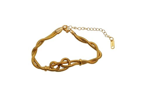 Generic - سوار للنساء من الستانلس ستيل بتصميم متعدد الطبقات مع مشبك لوبستر، مقاس واحد - ذهبي FA99