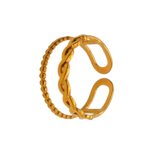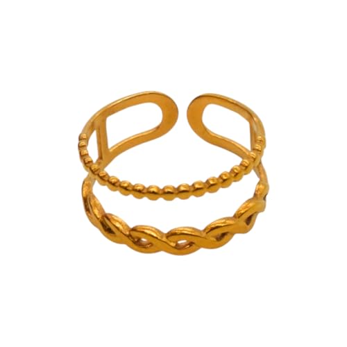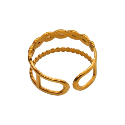 Generic - خاتم للنساء من الستانلس ستيل بتصميم متعدد الطبقات، مقاس واحد - ذهبي FA322