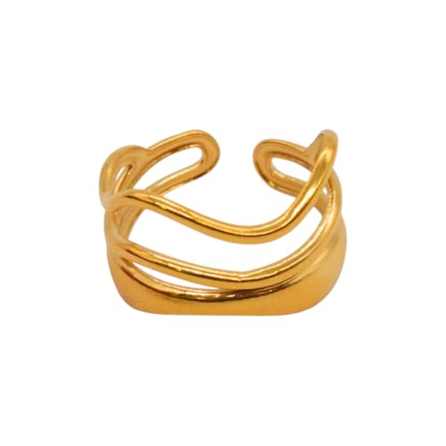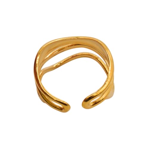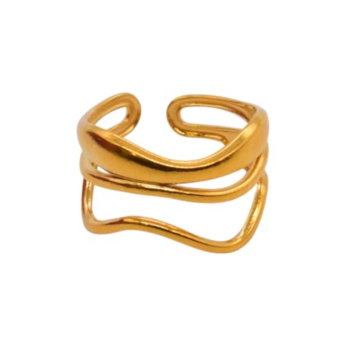 Generic - خاتم للنساء من الستانلس ستيل بتصميم متعدد الطبقات، مقاس واحد - ذهبي FA324
