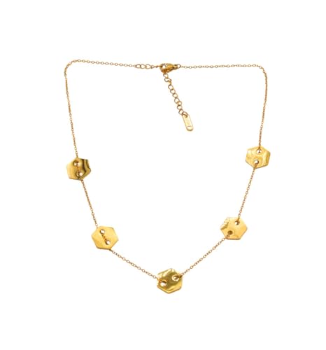 Generic - عقد من الستانلس ستيل بدلايات سداسية غير منتظمة ومطروقة للنساء - ذهبي