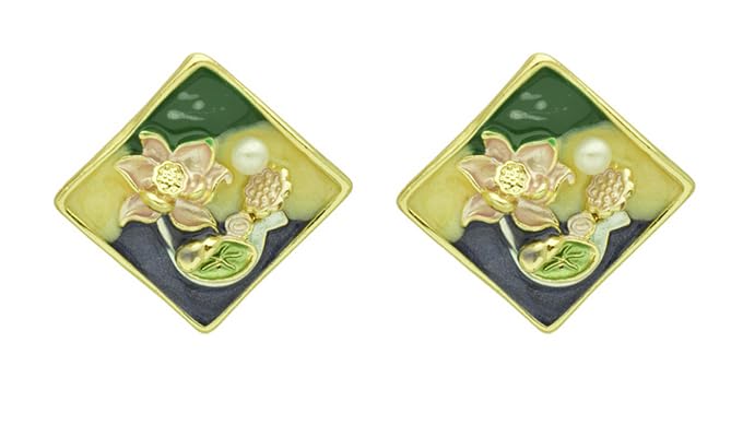 Generic - اقراط مربعة من الستانلس ستيل مستوحاة من الطبيعة للنساء - لون ذهبي