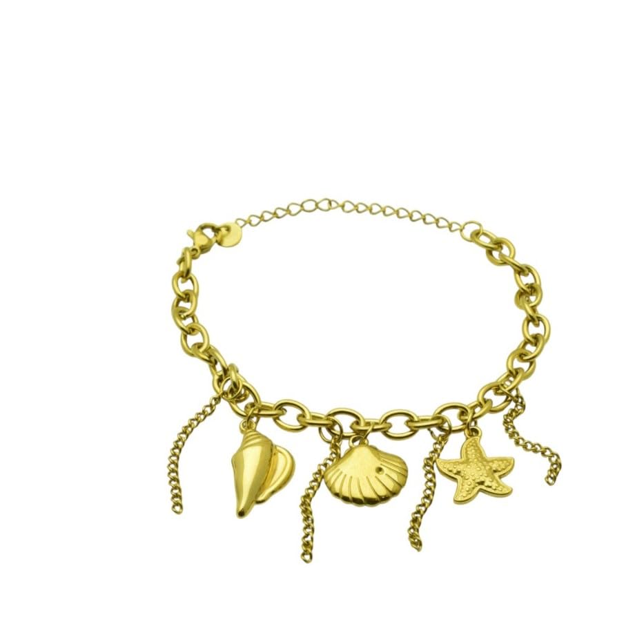 Generic - سوار بحلية بحلية من الستانلس ستيل مع شراشيب للنساء - ذهبي