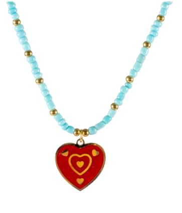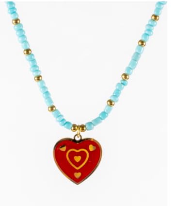 Generic - سلسلة من الفولاذ المقاوم للصدأ بلون ذهبي مع خرز تركواز ودلاية على شكل قلب أحمر