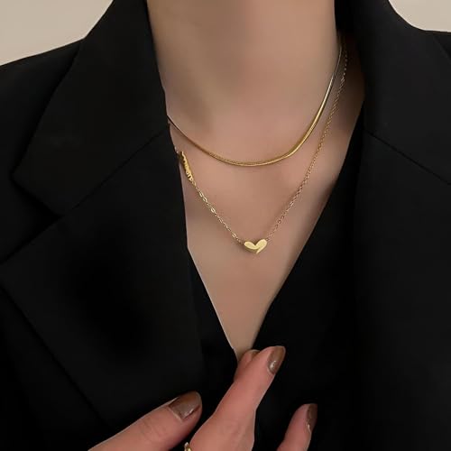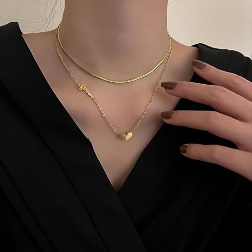 Generic - قلادة من الستانلس ستيل - مجوهرات انيقة على شكل قلب، تصميم مكتنز قابل للتعديل للبنات والنساء