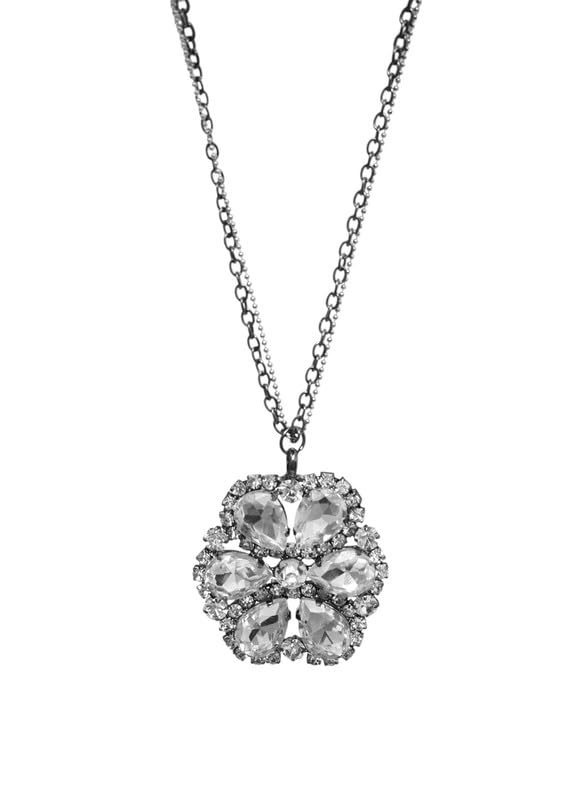 Generic - سلسلة من الفولاذ المقاوم للصدأ مع دلاية بـ 6 فصوص كريستالية وفص ألماس للنساء - لون فضي وأخضر