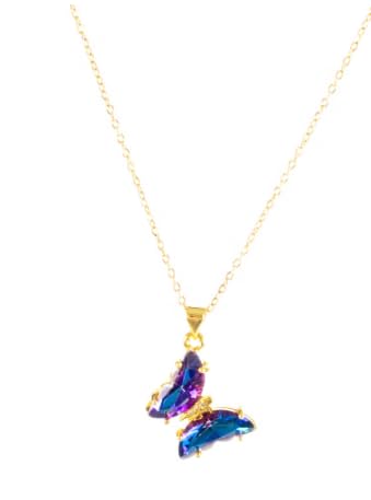 Generic - عقد من الستانلس ستيل مرصع بحجر كريستال ازرق ارجواني على شكل فراشة