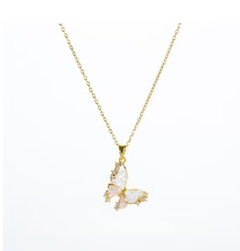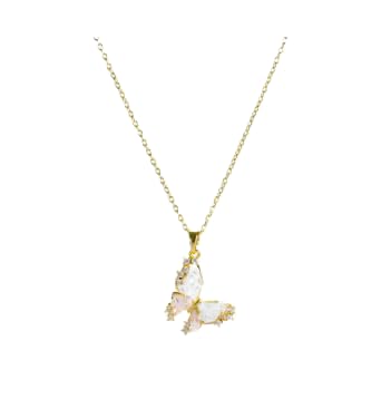 Generic - عقد من الستانلس ستيل مع دلاية على شكل فراشة من الزركونيا البيضاء