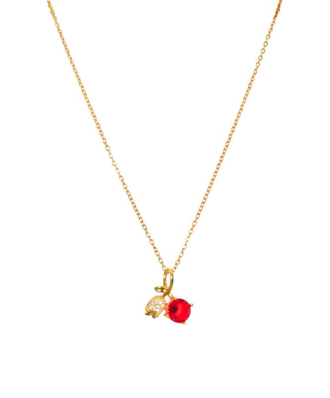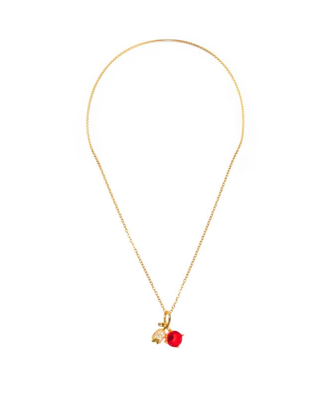 Generic - عقد من الستانلس ستيل بتصميم كرز للبنات - ذهبي واحمر - 786