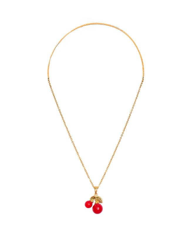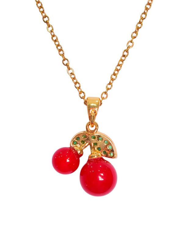 Generic - عقد من الستانلس ستيل بتصميم كرز للبنات - ذهبي واحمر - 7872