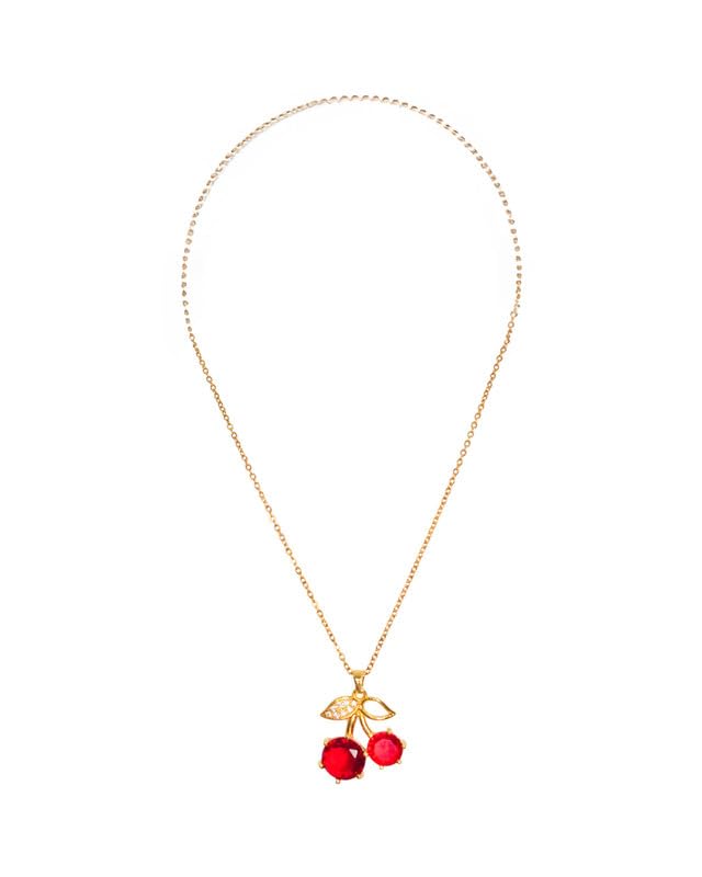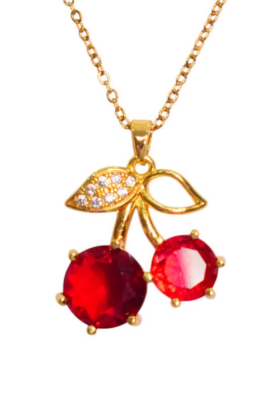 Generic - عقد من الستانلس ستيل بتصميم كرز للبنات - ذهبي واحمر - 7888