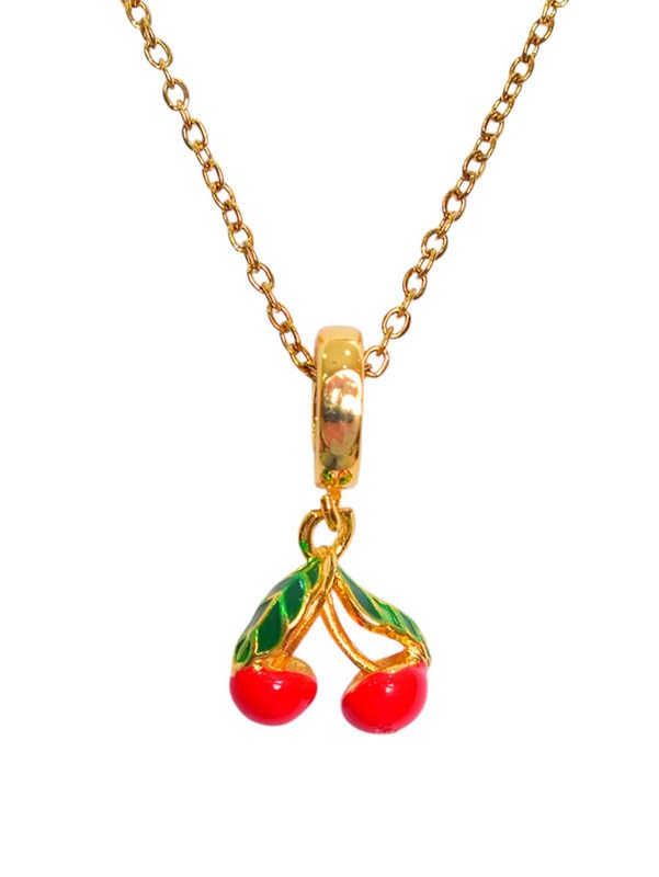 Generic - عقد من الستانلس ستيل بتصميم كرز للبنات - متعدد الالوان - 7869