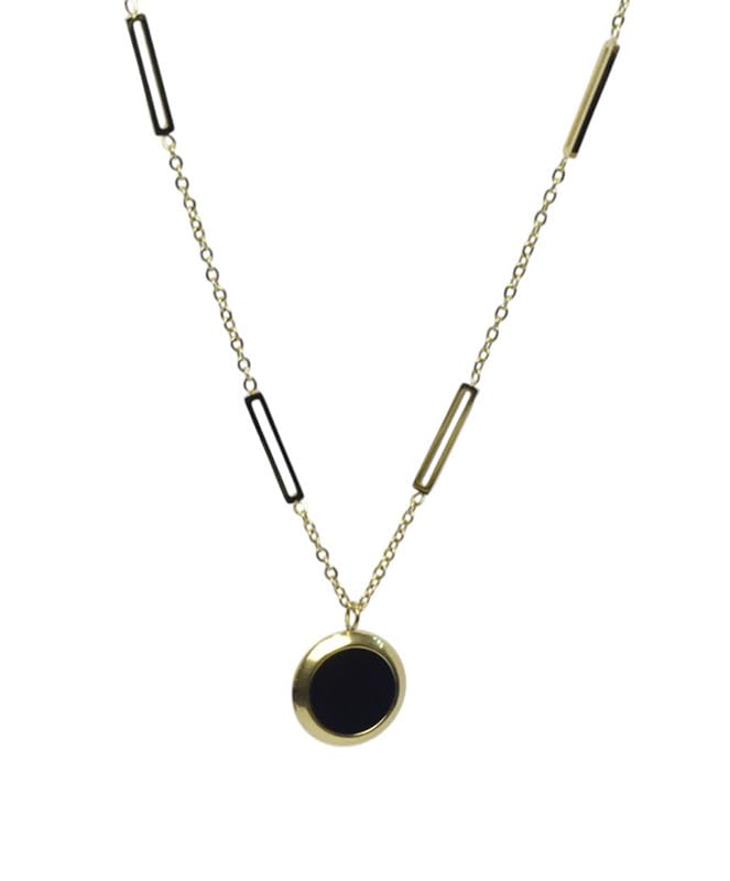 Generic - عقد من الستانلس ستيل بتصميم دائري للبنات - ذهبي واسود - 110
