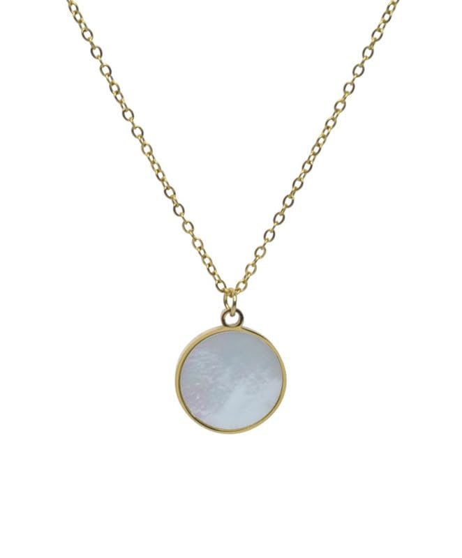 Generic - عقد من الستانلس ستيل بتصميم دائري للبنات - ذهبي وابيض - 18