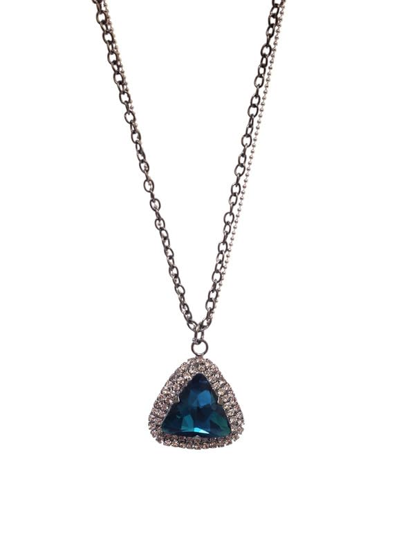Generic - عقد من الستانلس ستيل مع قرنفل ماسي وحجر كيرستال للنساء - فضي وكحلي