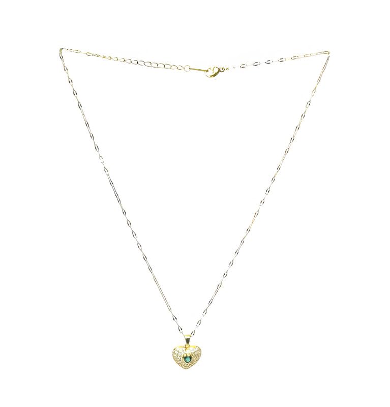 Generic - عقد من الستانلس ستيل بتصميم قلب للبنات - ذهبي واخضر