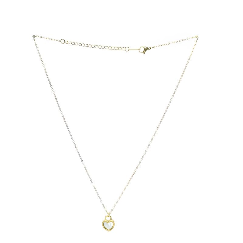 Generic - عقد من الستانلس ستيل بتصميم قلب للبنات - ذهبي وابيض - 69