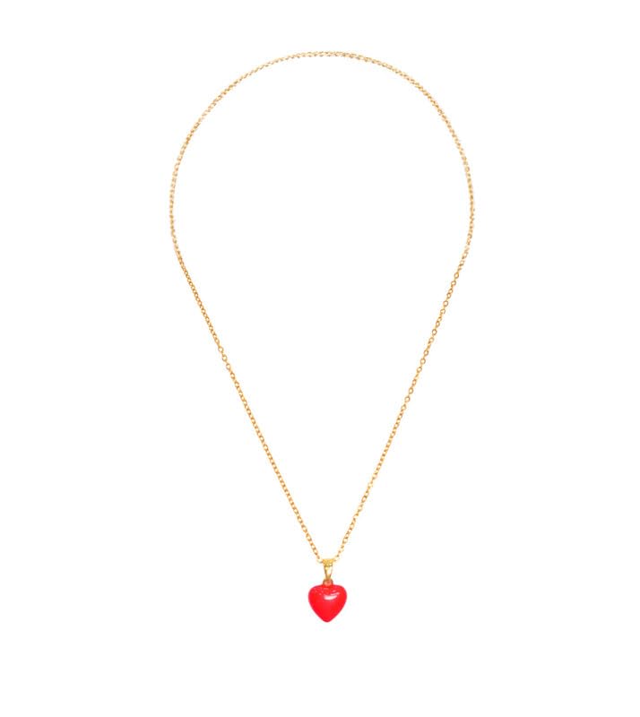 Generic - عقد من الستانلس ستيل بتصميم قلب للبنات - ذهبي واحمر - 8786