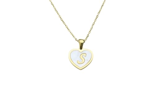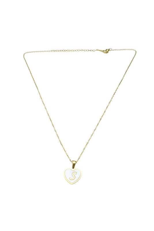 Generic - عقد من الستانلس ستيل بدلاية على شكل قلب على شكل حرف "S" للنساء - ذهبي