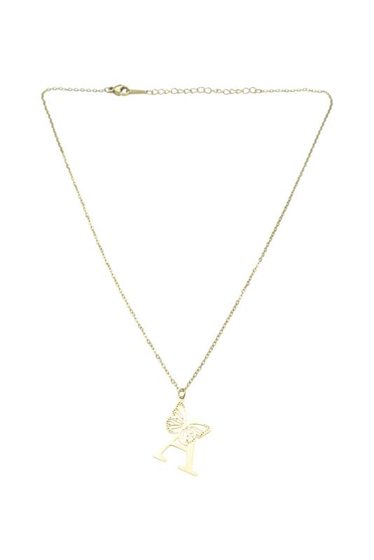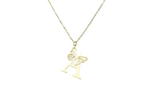 Generic - عقد من الستانلس ستيل بدلاية على شكل فراشة مزين بالحرف الاول من الحرف "A" للنساء - ذهبي
