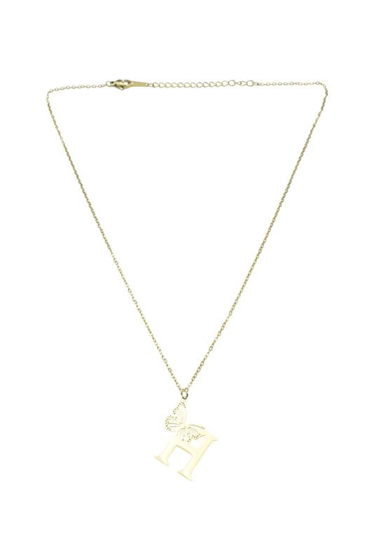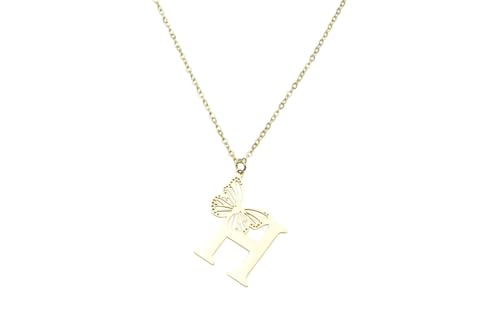 Generic - عقد من الستانلس ستيل بدلاية على شكل حرف H وفراشة للنساء - ذهبي