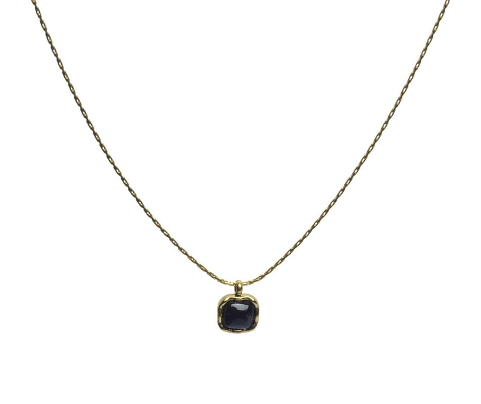 Generic - عقد من الستانلس ستيل بتصميم مربع صغير للبنات - ذهبي واسود