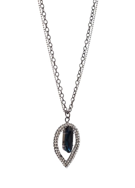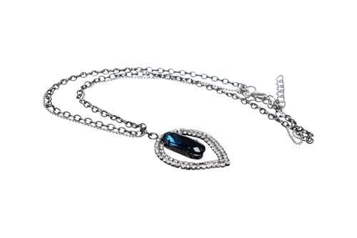 Generic - عقد من الستانلس ستيل مع دلاية من الماس الصناعي للنساء - فضي وكحلي