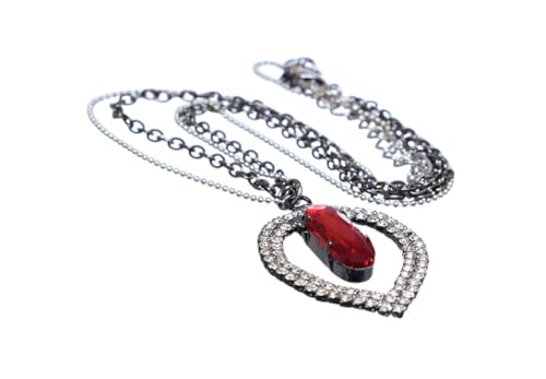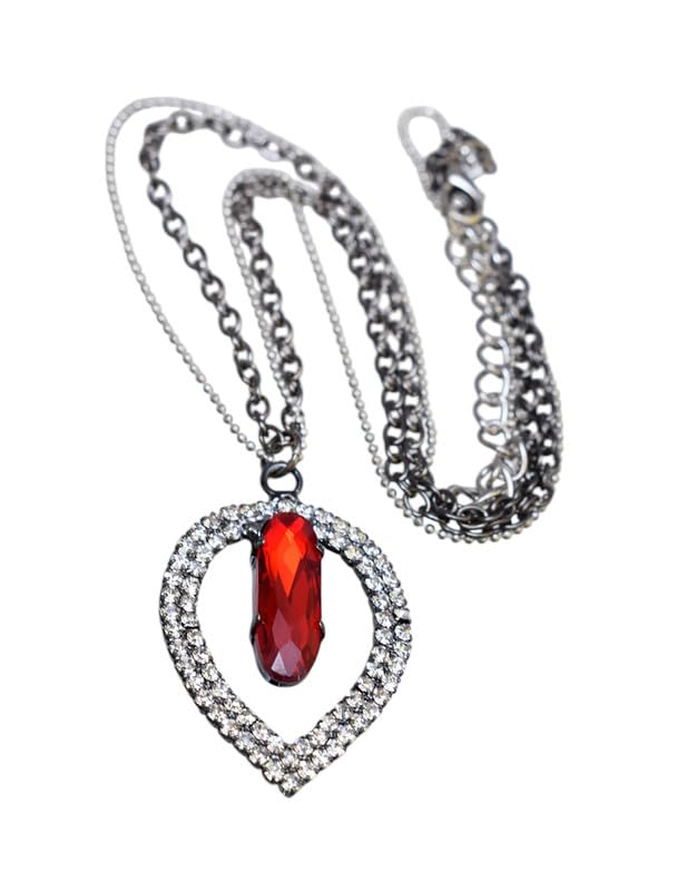 Generic - عقد من الستانلس ستيل مع دلاية من الماس الصناعي للنساء - فضي واحمر