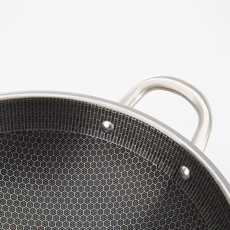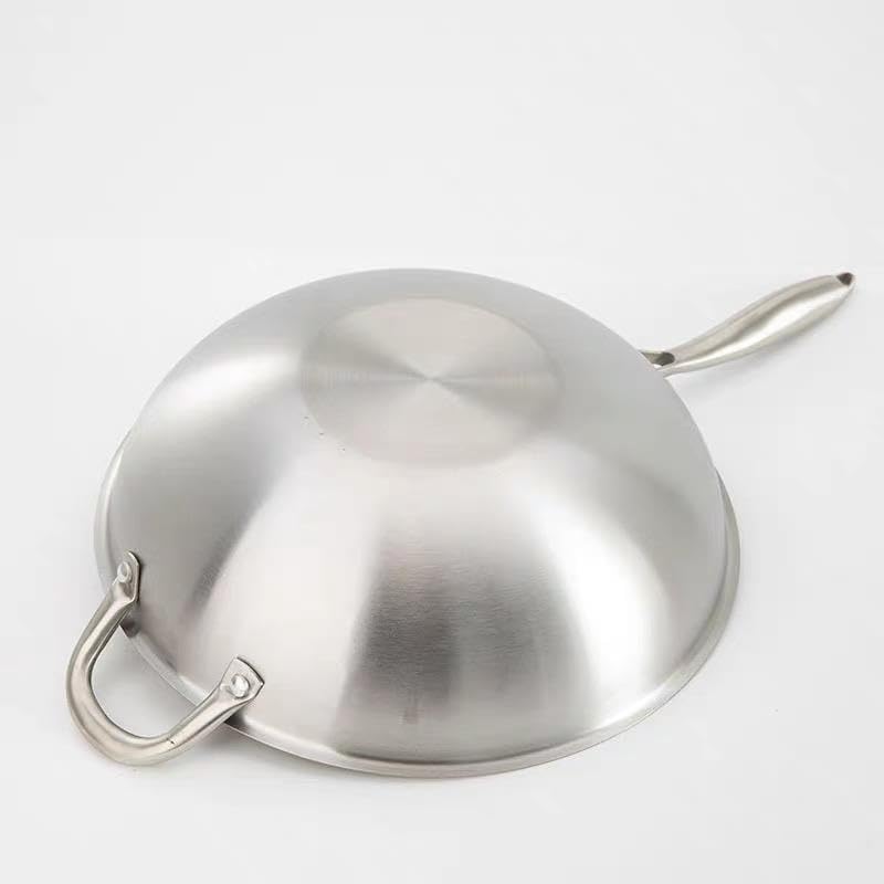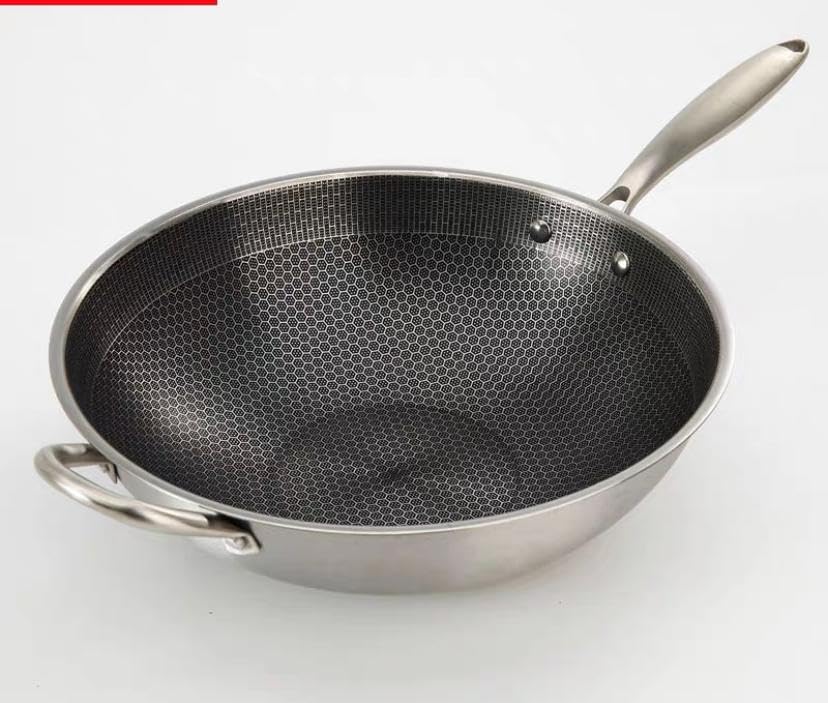 Generic - مقلاة ووك ستانلس ستيل غير لاصقة مع مقبض، فضي، للطبخ والخبز مقاس 32 سم