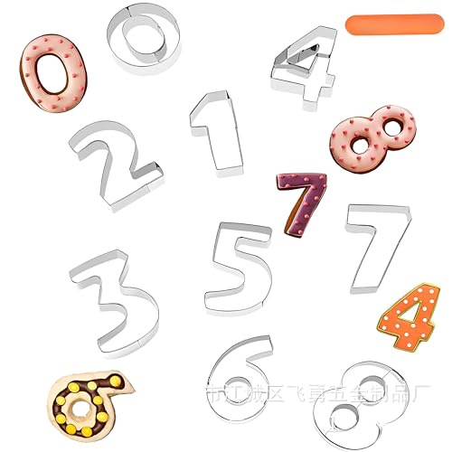 - تحتوي هذه المجموعة على 9 قطاعات الكوكيز من الفولاذ المقاوم للصدأ تتميز بأشكال الأرقام 0 و1 و2 و3 و4 و5 و6 و7 و8. يمكن أيضًا استخدام القطاعة شكل 6 للحصول على رقم 9، مما يسمح بمشاريع خبز متعددة الاستخدامات ذات طابع أرقام. يبلغ مقاس كل قطاعة حوالي 8 × 5 سم، فهى مثالية لمجموعة متنوعة من أغراض الخبز.
