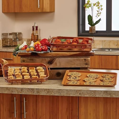 - تتميز صينية القلي المستطيلة هذه بسطح مثقّب يقوم بتصريف الزيت الزائد عن الأطعمة المقلية بفاعلية، مما يضمن وجبات أكثر صحة دون المساس بقرمشتها أو نكهتها.