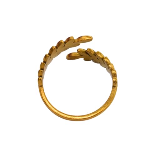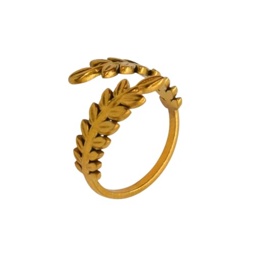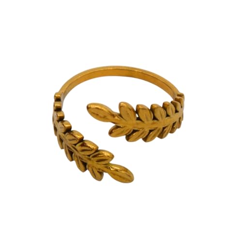 Generic - خاتم للنساء من الستانلس ستيل بتصميم اكليل من اوراق الزيتون، مقاس واحد - ذهبي