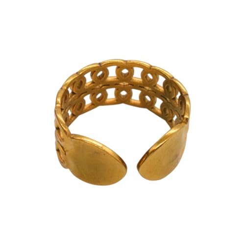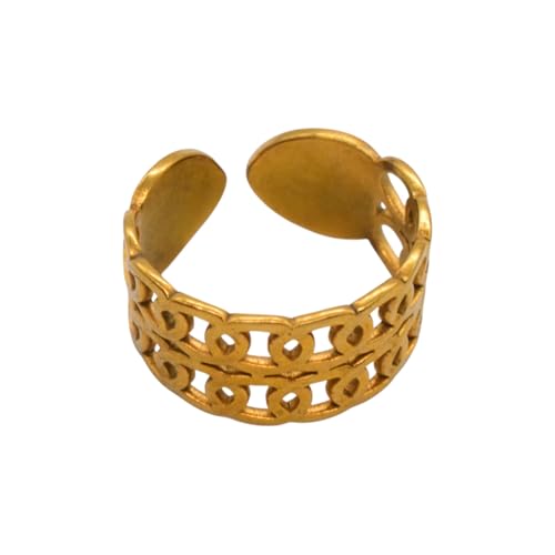 Generic - خاتم للنساء من الستانلس ستيل بتصميم مخرم، مقاس واحد - ذهبي FA376