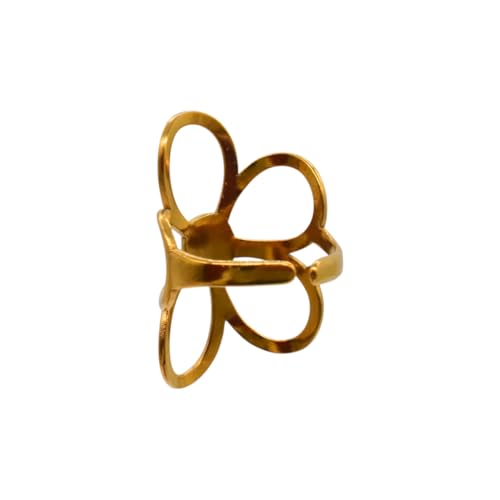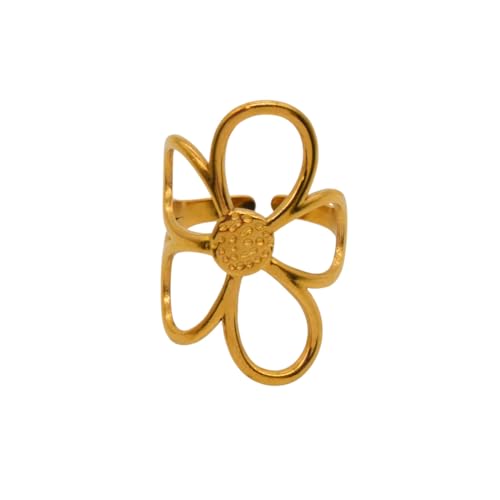Generic - خاتم للنساء بتصميم زهور مخرمة من الستانلس ستيل، مقاس واحد - ذهبي