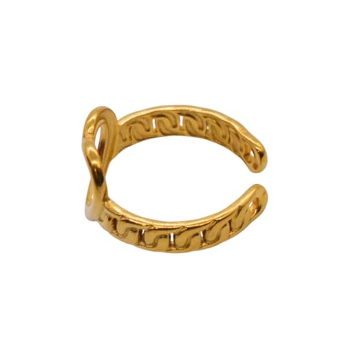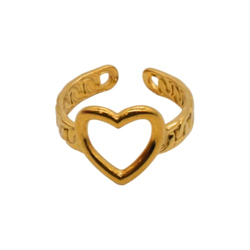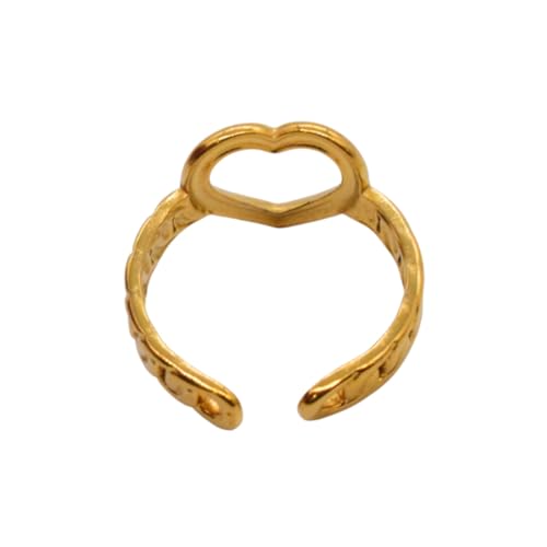 Generic - خاتم للنساء من الستانلس ستيل بتصميم قلب مخرم، مقاس واحد - ذهبي FA317