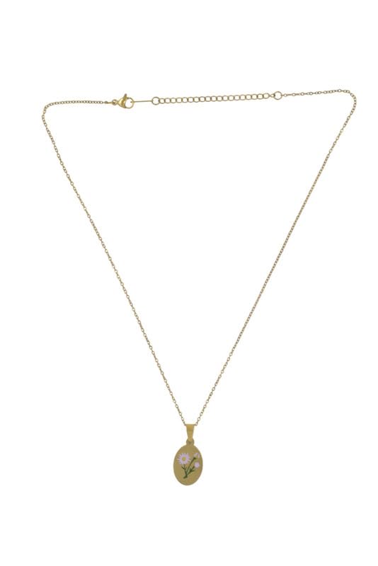Generic - عقد بقلادة بيضاوية من الستانلس ستيل على شكل زهرة الاقحوان للنساء - ذهبي