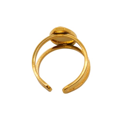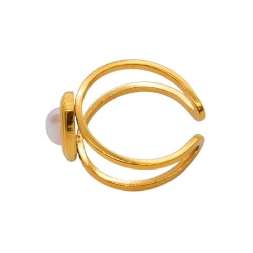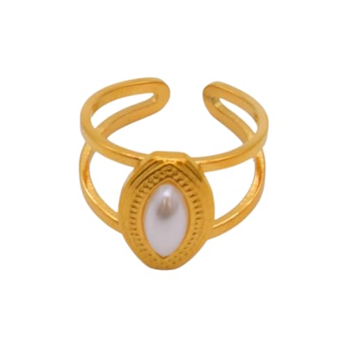 Generic - خاتم مزدوج الطبقات من الستانلس ستيل مزين باللؤلؤ البيضاوي، مقاس واحد - ذهبي