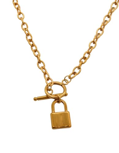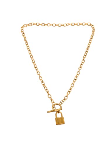Generic - عقد بقلادة بقفل من الستانلس ستيل للنساء - ذهبي