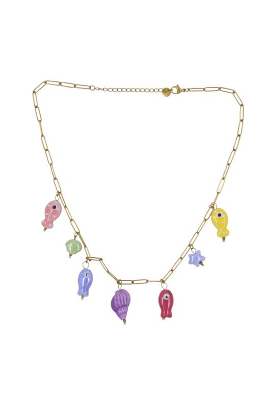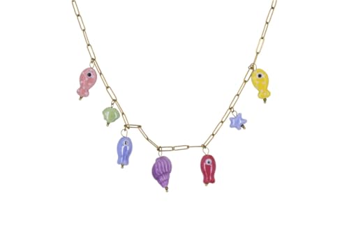 Generic - سلسلة بمشبك ورق من الستانلس ستيل مع تعليقة بحر ملونة للنساء - لون ذهبي