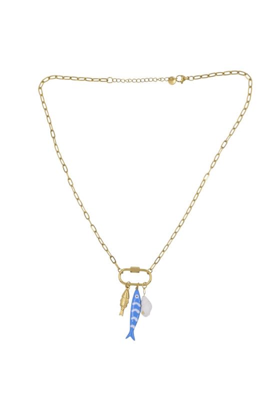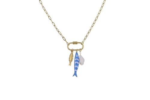 Generic - قلادة سلسلة بمشبك ورق من الستانلس ستيل مع دلايات على شكل سمكة وقشرة للنساء