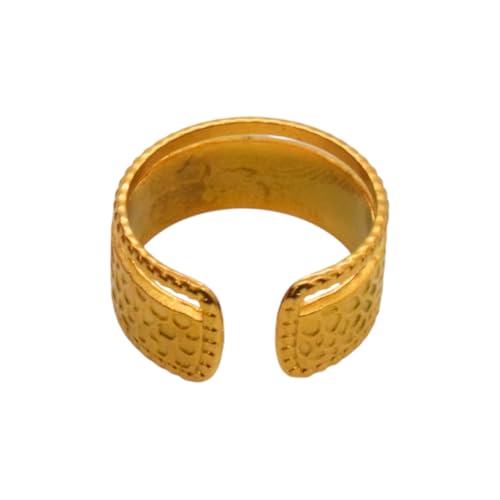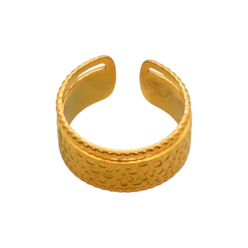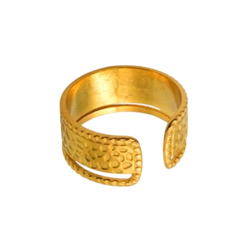 Generic - خاتم منقوش من الستانلس ستيل للنساء، مقاس واحد - ذهبي