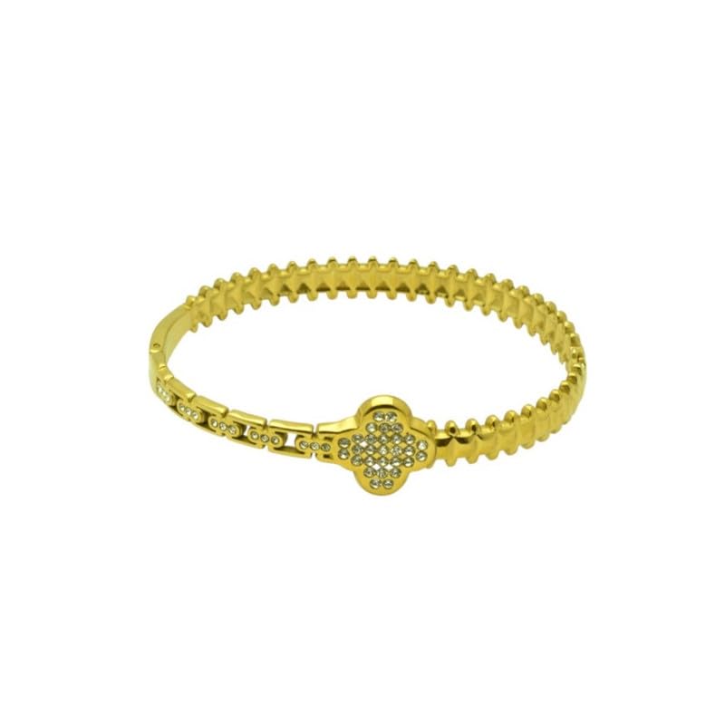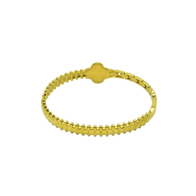 Generic - سوار حلقي من الستانلس ستيل بتصميم زهرة البرسيم بمفصلات للنساء، مقاس 18 - ذهبي