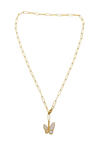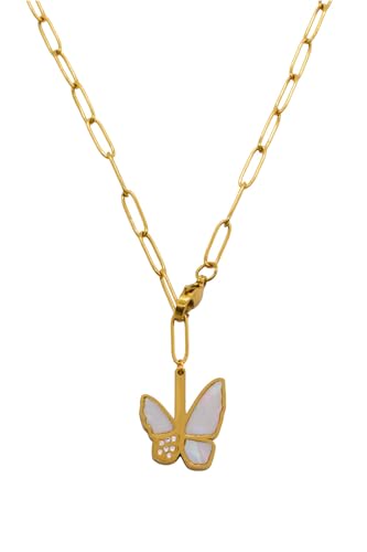 Generic - سلسلة بدلاية على شكل فراشة من اللؤلؤ من الستانلس ستيل للنساء - ذهبي