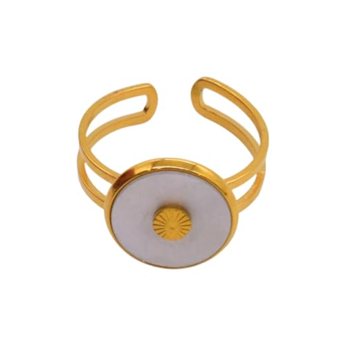 Generic - خاتم مزدوج الطبقات من الستانلس ستيل مزين باللؤلؤ للنساء، مقاس واحد - ذهبي
