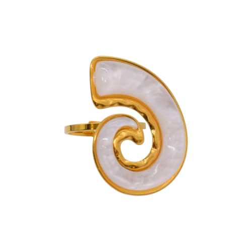 Generic - خاتم للنساء من الستانلس ستيل على شكل حلزون من اللؤلؤ، مقاس واحد - ذهبي