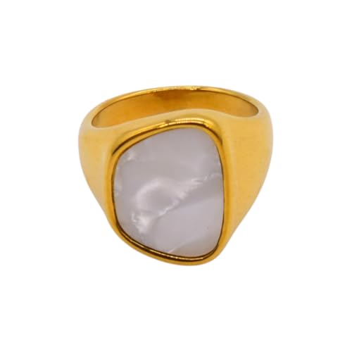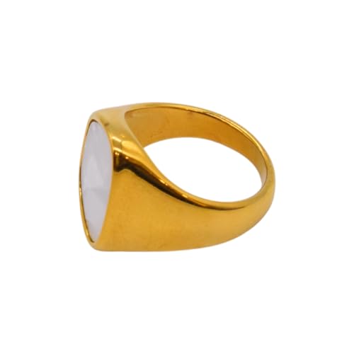 Generic - خاتم للنساء من الستانلس ستيل واللؤلؤ، مقاس 17 - ذهبي