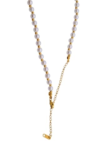 Generic - عقد لؤلؤ وخرز من الستانلس ستيل للنساء - ذهبي FA614