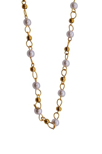 Generic - عقد لؤلؤ وخرز من الستانلس ستيل للنساء - ذهبي FA616