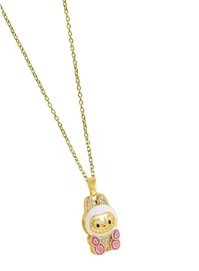 Happy Home - عقد بقلادة من الستانلس ستيل، قلادة وسلسلة، اكسسوارات للنساء، قطعة واحدة (ابيض)
