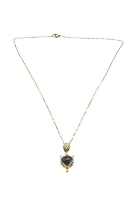 Generic - عقد بقلادة من الستانلس ستيل مع كريستال واحجار كريمة داكنة للنساء - ذهبي