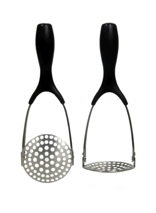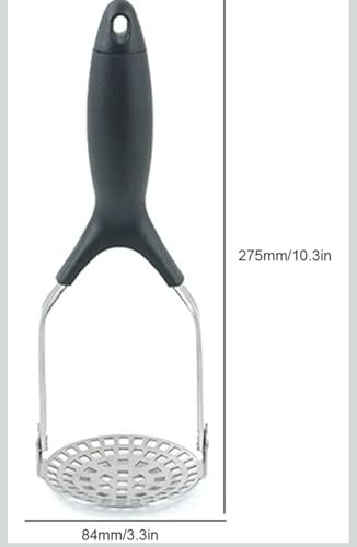 Generic - هراسة بطاطس من الفولاذ المقاوم للصدأ مع مقبض أسود، أداة مطبخ لهرس الخضروات، 275 ملم مع إمكانية تحويل الهراسة إلي مصفاة للطعام